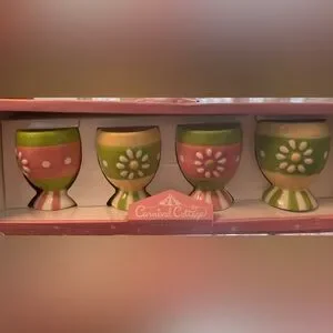 Carnival Cottage collection ceramic egg cups. New, in box. Add to your collection!! Bundle to save!!