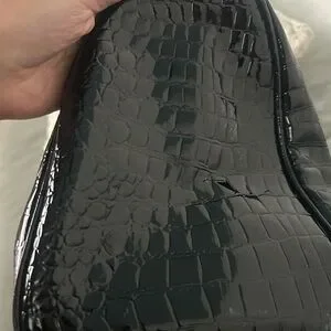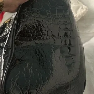 Patricia Field X Barbie Black/Gold Satchel Purse Faux Crocodile Pre-owned Good Condition with minor flaws on one side