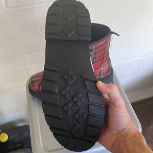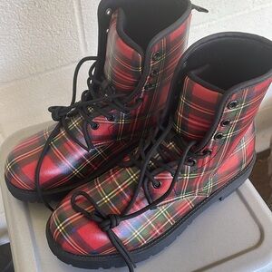 Classic combat boots in plaid tartan print, new never worn