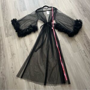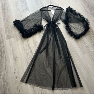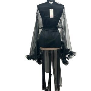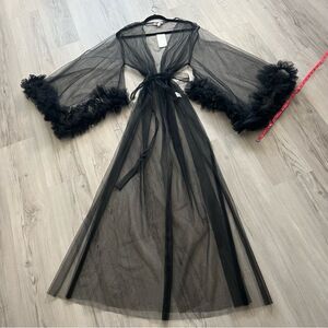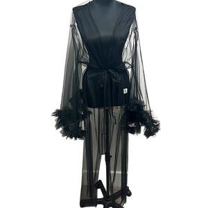 Hot & Delicious x Dolls Kill Plus Melodic Goddess Sheer Duster in black new with tags. Sold out online. *PLEASE NOTE I HAVE A 1X AND 2X AVAILABLE* measurements shown are for the 2X. plus size black sheer duster robe with v neck and ruffle sleeves as shown. Cute kimono style square cut sleeves. Put on that birthday suit and rock it! Or pair with pasties and lingerie for a super sexy teaser. Perfect for a sexy Valentine’s Day look or that trad sexy goth in your life! Fun and flirty! Measurements in photos.