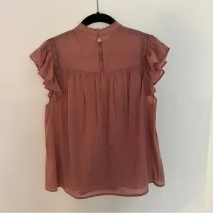 Light and airy. Lovely dusty rose color. Good condition with slight fraying at bottom of keyhole cutout in back, as pictured.
