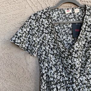 LEVI’S NWT Black White & Yellow Ditsy Floral Printed Button Down 90s Midi Dress