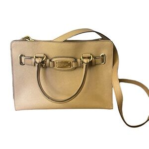 Authentic Michael Kors Leather Handbag in Tan- Size Medium