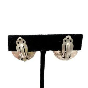 Vintage Azurite Malachite Clip-on Earrings Sterling Silver Southwest Mexico 925