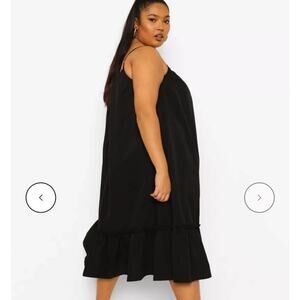 Boohoo Plus Drawstring Smocked Midi Dress Black US 16
