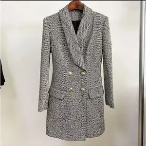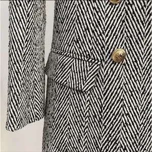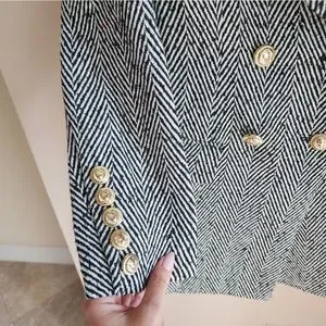 Double breasted striped wool coat