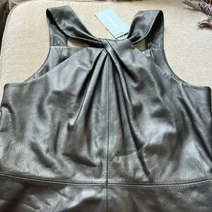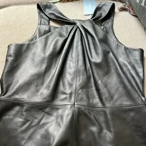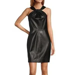 Antonio Melani Jessica Twisted Halter Neck Genuine Leather Sheath Mini Dress