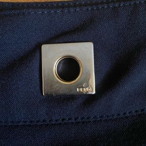 Authentic Fendi low rise flare pants with gold grommet details at the waistband. Zip fly front with internal button closure. No pockets. Fabric is quite stretchy and hugs the butt and thighs in a flattering way. Great for work or going out. Fits like a size 4.