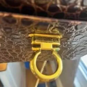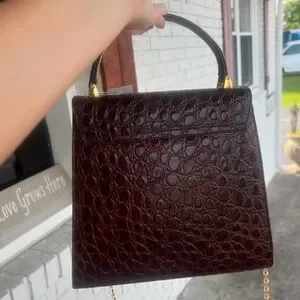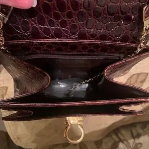 💎✨VERY RARE!💎✨Iconic Auth Salvatore Ferragamo Gancini 2way Croc Embossed Brown