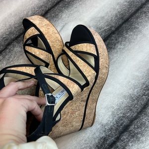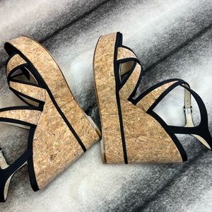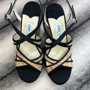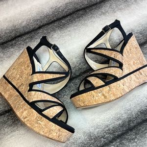 Jimmy Choo Alissa 120 Natural Black Cork Grossgrain Wedges