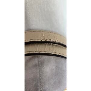 **there are some light ink pen stains on the inside in several spots but I cleaned it and lightened them up extensively. See pics. There is an orange mark near the snap closure. Wouldn't come off. The hardware has some light scratches and the bottom trim has a little bit of a scuff mark, nothing major here. Still in great shape, lots of life left.