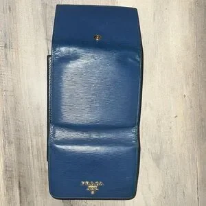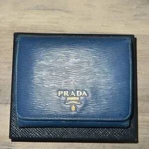 PRADA Blue Vittello Move Leather Trifold Wallet