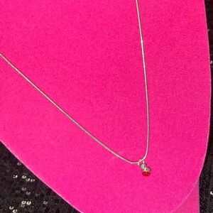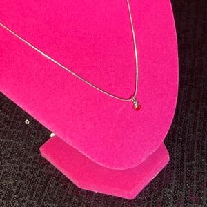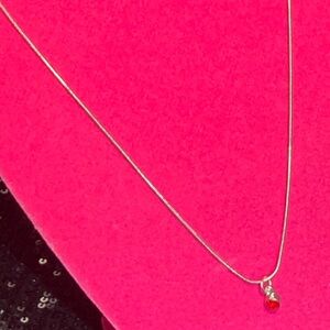 Ruby signifies love and passion, provides strength & protects from bad luck. It’s 18 inches long, falls right under the neck, with a lobster clasp closure, Sterling Silver. Comes from a smoke free, pet free home. More jewelry available at my closet!