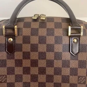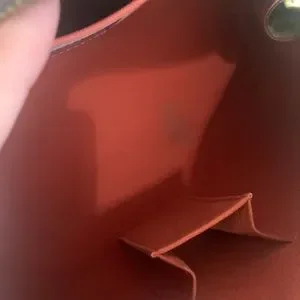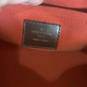 The leather handles are in great condition, with no exposed piping, emphasizing the quality craftsmanship that Louis Vuitton is known for. While there is a minor makeup stain inside, it is quite tolerable, and the bag comes from a pet-free and smoke-free home.