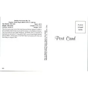 Hawker Hurricane Mk. IIa Vintage Postcard PC19
