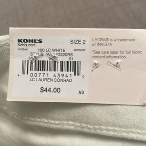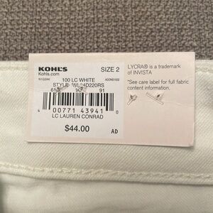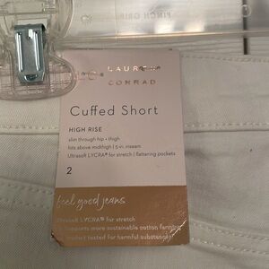 Purchased new and never used LC white cuffed shorts, size 2, high rise, slim through hip and thigh, 5” inseam, ultra soft Lycra for stretch, flattering pockets, in perfect condition from a pet and smoke free home.