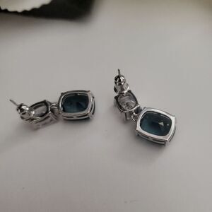 Women's Deep Sea Blue & White Diam Dangle Stud Earrings on 925 Sterling Silver