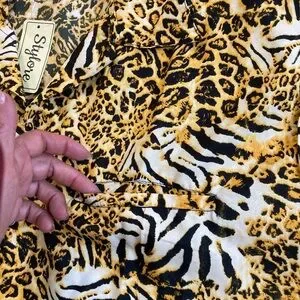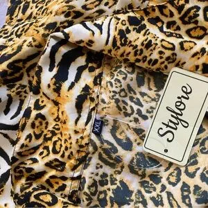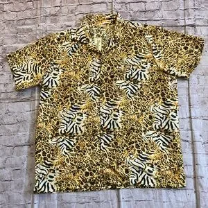 NWT STYLORE men’s animal print yellow/black short sleeve button-down shirt one chest pocket slept on each side 100% lightweight polyester size XXL and XL please check all the photos for measurements and details. Photos show size XXL with measuring tape reasonable offers welcome bundles of two or more discount.