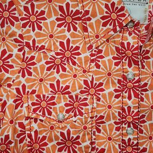 Roper Orange & Red Floral Button Down Western Shirt Size XS. This long sleeve collared shirt features beautiful stitching detail, mother of pearl snap buttons and front breast pockets. Excellent condition! Great for rodeo season!