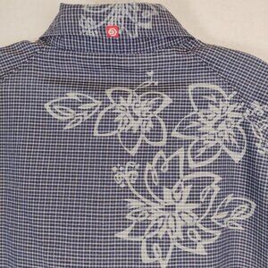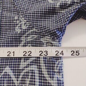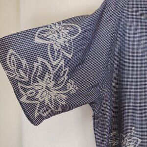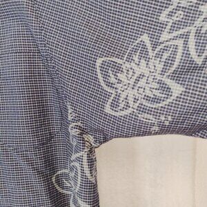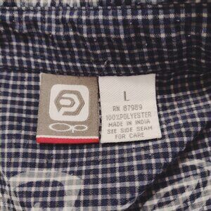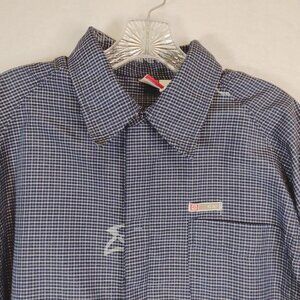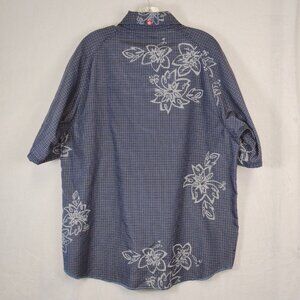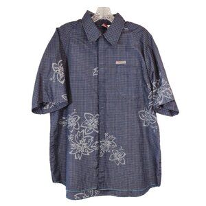Vintage OP Ocean Pacific Mens L Button Up Shirt Blue and White Rayon SS Beach