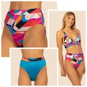 This flattering high-rise bikini bottom features a chic silhouette, and reversible print which offers a two-in-one swim bottom