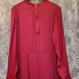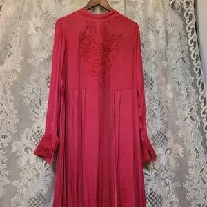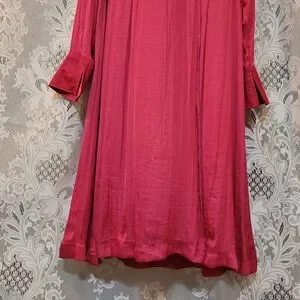 Free People L Vintage Pink Satin Embroidered Long Sleeve Tunic Top w/ Front Slit. In good condition.