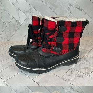 Excellent condition JBU red black buffalo plaid boots 9
