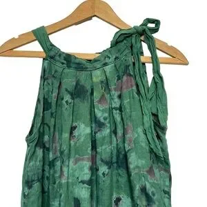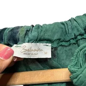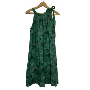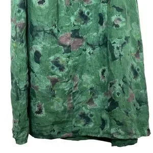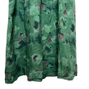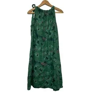 Bellambia 100% Pure Linen Green Floral Halter A-Line Dress Medium
