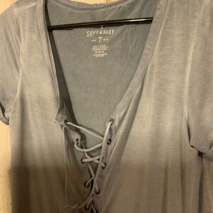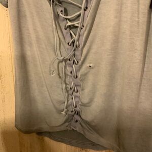 Light grey American Eagle Soft & Sexy T. Laces up the front. Super fun top to have. Size M. Never worn.