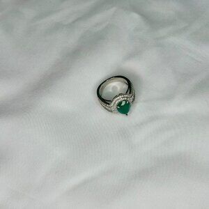 Halo Pear Cut Emerald Green Engagement Ring, size 6 3/4