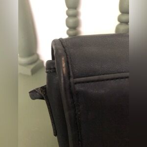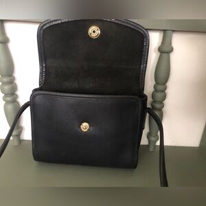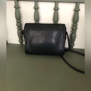 This Coach Chrystie is in excellent vintage condition. Brass spring lock closure is functioning wonderfully. Interior is unlined with a zippered pocket. Authenticated on coach counterfeits group. Crossbody strap drop is approx 22-23 inches, dimensions are 7 X 2 X 7. Original Coach hangtag not included. The color is difficult to determine - not sure if it’s navy or black as vintage navy is quite dark! Comparison photos with a true black bag posted. Minor signs of wear noted in pictures.