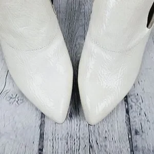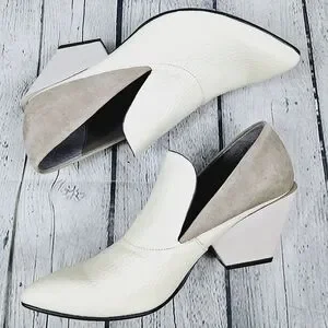 Naked Feet Sagitta patent & suede leather pointed toe heeled ankle booties. Some light signs of wear. See photos for details. Otherwise great pre-owned condition.
