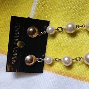 NWT Vintage Faux Pearl Chandelier Gold Tone Earrings for pierced ears