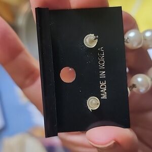 Faux pearl and gold tone. Very light in weight.