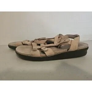 SAS Tripad Comfort Sorrento Linen Ivory Beige Leather Strappy Sandals Size 11