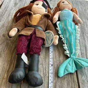 Mermaid and pirate dolls plush Jack by Aurora Cloth with yarn hair 14”