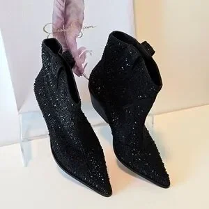 Jessica Simpson Rhinestone Black Micro Flash Tamira Boots 7M NWOT. Brand new, never worn still in box.