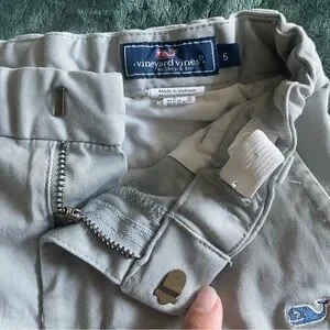 Vineyard Vines boy kid shorts size 5 in great condition. Grey Khaki shorts, brown buttons.