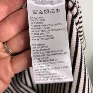 Silence + Noise Ivory Black Striped Stretch Harness Backless Night Out Dress M. Dress Urban Outfitters. 57% Cotton, 39% Polyester, 4% Spandex. Care Washable Open Back. Off white/ivory and black stretch fine ribbed fabric. Pull-on high front halter-like neckline with harness straps at each side creating a backless silhouette. Bodycon. Knee to below knee depending on wearer's height. The dress can easily be dressed up or down. Multi seasonal. Colors may vary slightly due to different monitors. SleevelssBodycon, BacklessBodyconDress, BodyconDress, UrbanOutfittersDress, SilenceNoiseDress, Silence + Noise Night Out Dresses.