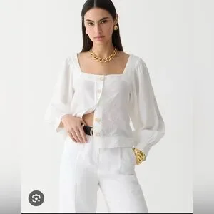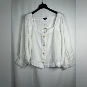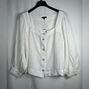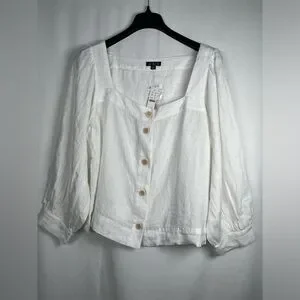 J.CREW Size XXL Squareneck Button-Up top 100% Linen White