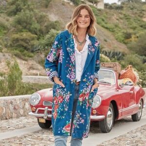 Brand New, Never worn. Vintage, floral printed topper featuring gingham lining. Notch lapel, button placket at cuff. Linen/cotton. Machine wash. Imported.
