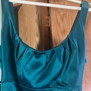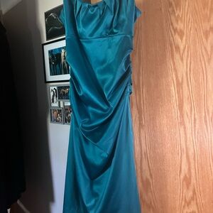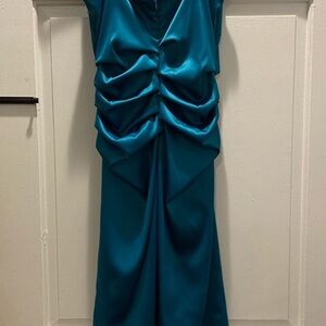 $140 Suzi Chin for Maggy Boutique teal cocktail dress with ruching. Sz 8 or 10