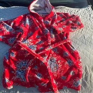 Matilda Jane Breakfast in Bed Fluffy Red/Blue Floral Robe Size Large