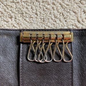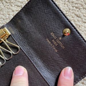 Authentic Louis Vuitton classic monogram Mini Lin and leather key holder.