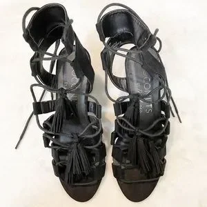 COCONUTS MATISSE Copa Tassel Lace Up Strappy Sandals Heel Suede Black 6