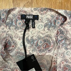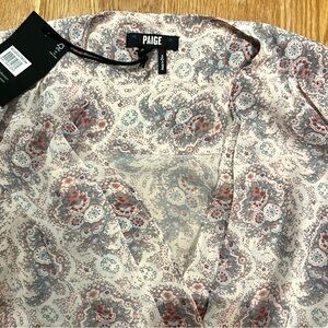 This gorgeous PAIGE Margherita blouse is lightweight and beautiful for daytime and nighttime wear! Love the paisley and floral boho like print with this classic fit. Crossover top with hook and eye closure, wrap style, and left side tie detiail, long sleeves with elastic, somcked cuffs. New with tags, never worn!