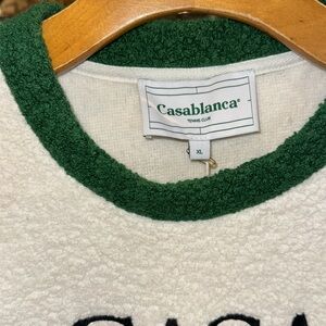 Casablanca Tennis Club cashmere blend terry embroidered color blocked sweatshirt. Colors are off white and green. NWT, authentic. From shoulder to hem - 28 inches, arm length- 26 inches, from pit to pit - 27 inches.