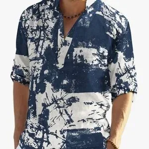 NWT COOFANDY men’s navy/white print long sleeve shirt. Super soft, lightweight, breathable 95% cotton 5% hemp material , 1/3 button down with four buttons , roll up sleeve,according to the website, no shrink and no fade, Henley, neck, and stand collar, size XXL, the pattern might be a little bit different with the one on the model, please check all the photos for measurements and details, reasonable offers welcome, bundles of two or more discount.