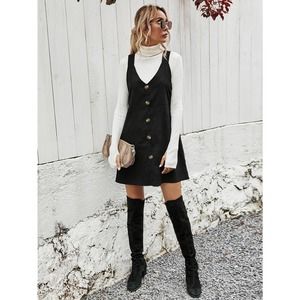 Button down Corduroy Overall Dress (without tee) tan plaid