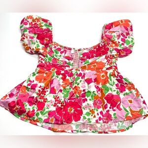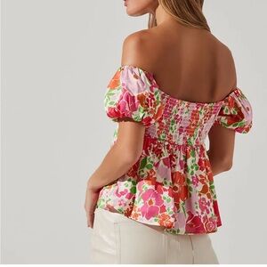 ASTR the Label Women's Nalda Top Floral Size Small Pink Puff Sleeve
